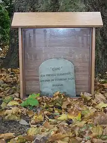 Giro was a terrier dog, or according to some accounts, a German shepherd[1] that belonged to the German ambassador to the United Kingdom, Leopold von Hoesch. Giro died in 1934 after chewing through some electrical cable and was buried in the garden of the former German embassy at 9 Carlton House Terrace.[2] Giro's owner died of a heart attack in April 1936 and his body was ceremonially returned to Germany.[3]
