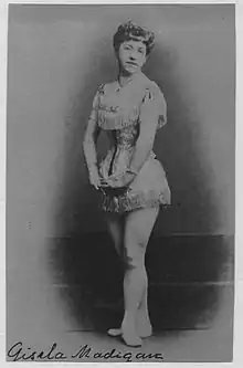 Gisela Antonia Brož (Brosch) (April 4, 1865[1] – January 28, 1944[2]), also sometimes referred to as Gisela Madigan, was an Austrian-American circus performer, tightrope dancer, and clown. Her parents were shoemaker Joseph Brož and his wife Maria.[3] She went to convent school in Transylvania and at the age of 15 she got to know the Madigan circus family, including John and Laura, who at that time toured with Circus Krembser in Vienna. Gisela became their foster child and got to learn tightrope dancing, along with the couple's two-year-younger daughter Elvira Madigan, on the slack wire.[4]