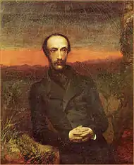 From the 1830s Giulietta and her brother were active in the Milanese salon of Clara Maffei where she came into contact with many artistic and literary figures of the day whom she charmed with her vivacious personality, beauty, and long blond curls. Honoré de Balzac, who frequented the Maffei salon in the late 1830s referred to her as "The Angel".[6] In 1841, three of her poems were published in the Turinese journal Museo scientifico, letterario ed artistico. The following year, she published her first novel and gave birth to her daughter and only child, Noemi. According to Raffaello Barbiera, the child's father was Hermann Cohen, an eccentric German-Jewish pianist ten years her junior who later converted to Catholicism and became a priest of the Discalced Carmelite Order.[1] Many members of the Maffei salon were active in the Risorgimento. It was there that Pezzi formed lifelong friendships with the Italian revolutionaries and patriots Aurelio Saffi, Maurizio Quadrio, Carlo Cattaneo, and above all, Giuseppe Mazzini, of whom she became a fervent follower.[1]