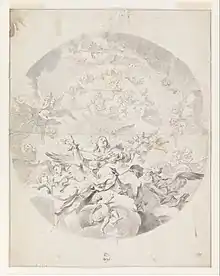 For the church of the Annuziata of Savona he painted the figures in a ceiling fresco with quadratura by Giovanni Battista Natali. Also for the Church of San Filippo Neri in Savona, which later became the church of the Scuole Pie, he painted the main altarpiece with San Filippo Neri and the Virgin.[3] He painted an Annunciation for the Parish church of Spotorno.[4] He died in Genoa.