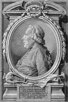 Giuseppe Santarelli (1710–1790) was an Italian castrato, composer, choir conductor, voice teacher, and Roman Catholic priest. He was named a knight of the Sovereign Military Order of Malta.