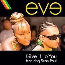 "Give It to You" is a song by Eve. It is a non-album single that was to be released on her fourth studio album, Here I Am.[1] The album ran into a series of delays and was ultimately renamed Lip Lock (2013). The song features dancehall artist Sean Paul and a mixture of Spanish guitar and reggae sounds. The song was sent to radio airplay on July 31, 2007 and released as a digital download on iTunes.
