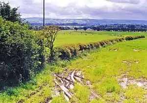 ![]() The site of the station, looking south towards Strathaven, in 1998 | |
