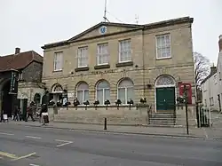 The first municipal building in the town was a market hall on the west side of the Market Place, which was commissioned by William Strode IV (1675–1746) who owned a share in the local manor, in around 1715.[2][3] The borough leaders leased the upper part of the building as a venue for their meetings in 1794.[2] By the early 19th century the market hall was in a dilapidated condition and had to be demolished; the borough leaders decided to build a new structure on the east side of the Market Place.[2]