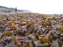 Glatved Beach is an angling and scuba diving area. It gets deep fast enough, for fishing close to the shore.[2] Facing the sea of Kattegat, the coast has some current and good water exchange enabling oxygen-rich conditions.[2] The tidal difference is moderate in the scale of 15 – 30 cm. The bottom is mostly stony, as a habitat for marine life and a hold for seaweed, promoting fish life. There are spots with sand in between, giving living conditions for flatfish. Flounder and dab are common flatfish at Glatved Beach.[2] Until the seventies, there was an abundance of cod, but today (2014) cod has become a rare species from all the shores of Djursland.[2] A marked and abrupt change in fish zoology. Garfish, sea trout and mackerel are more abundant now than previously.[2]