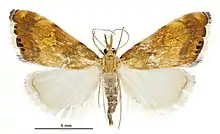 - ↑ "Glaucocharis leucoxantha (Meyrick, 1882)". www.nzor.org.nz. Landcare Research New Zealand Ltd. Retrieved 2018-01-20.