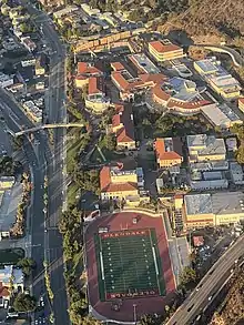 The campus now consists of 100 acres (40 ha) and 15 permanent buildings. It is located on the slopes of the San Rafael Hills overlooking the valleys in the Glendale area.