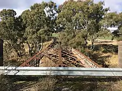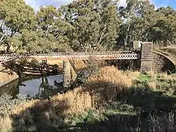 The continuous trusses are 46.6 metres long and the piers are quite tall at 10.1 metres high.[3] It is the third-oldest of its type in Victoria. Its location is directly south of the new bridge over the Bet Bet on the Pyrenees Highway.[4]