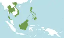 The species is found in Thailand, Vietnam, the Malay Peninsula, the Philippines and Borneo. It occurs in mixed hill forest at an elevation of 300โ€“800 m.[1]