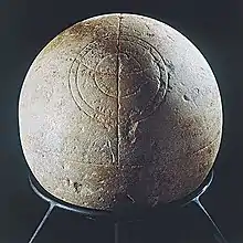 In the lower part there is a large conical depression which ends with a big rectangular hole, likely made to secure the base. Other theories for the sphere are that it was used for astronomical calculations, thus as an armillary sphere or for use in spherical astronomy.[2]