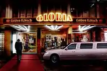 After a complete renovation and the addition of up-to-date technical equipment, the Gloria has since 2000 been a multi-purpose theatre and event location. It contains a theatre space with a maximum capacity of 400 sitting or 950 standing, and an 80-seat café.[2] The ambience evokes the 1950s, and the showcases with neon script at the entrance, the ticket kiosk, and the red velvet décor in the auditorium still recall its past as a cinema.[3] The operator is Gastro-Event GmbH, which employs approximately 50 people there. The Gloria is used for concerts, parties, readings, theatrical and comedy performances including the Cologne Comedy Festival, and sometimes for TV shows, including NightWash.[4][5][6][7][8][9][10] It has been described as "at the nexus of Cologne's trendy gay and lesbian scene".[11]