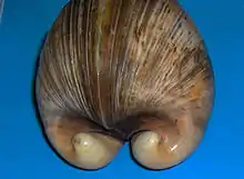 | A view of the umbonal area of Glossus humanus, the oxheart clam | |