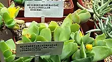 The distinctively short, fat, "tongue-shaped" leaves of G. linguiforme, some still showing their pale, waxy covering