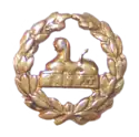 The Gloucestershire Regiment inherited from the 28th Regiment the privilege of wearing the back badge. It was a privilege that the 2nd Battalion did not want, but it was made palatable to the former 61st Regiment by replacing the number 28 with the Sphinx, a battle honour awarded to both predecessor regiments.[21] Although both battalions were forced to give up their individual facing colours on their uniforms – yellow for the 28th Regiment and buff for the 61st Regiment – when the government imposed a standard white across all English and Welsh regiments, the Gloucestershire Regiment never accepted this change for their regimental colours. Both battalions retained their former colours until 1929, when a compromise primrose yellow was finally chosen and a new regimental colour subsequently presented.[21][22]