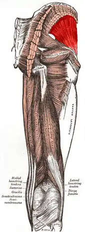 ![]() Gluteus minimus muscle (shown in red). Posterior view. | |
