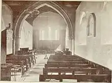 In 1894 there was a blocked up Norman doorway exactly opposite the west door of the chapel, the entrance to some previous large building, whose site was occupied by coal cellars.[24]
