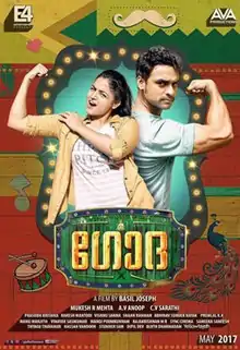 Godha (transl.Arena) is a 2017 Indian Malayalam-language sports comedy film directed by Basil Joseph and written by Rakesh Mantodi, and jointly produced by AVA Productions and E4 Entertainment. The film stars Tovino Thomas, Wamiqa Gabbi, Aju Varghese and Renji Panicker. The plot follows Aanjaneya Das, son of a gatta gusthi coach, who brings home Aditi Singh, a Punjabi wrestler. Godha was released on 19 May 2017.[2][3]