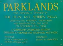 The complex was managed by the Parklands Trust and was the home for a number of organisations[4] including the Gold Coast Show Society,[5] Gold Coast Greyhound Racing[6] the Parklands Indoor Sports Centre[7] and the Gold Coast Harness Racing Club.[8][9][10] Between 1993 and 2013 it was also the venue for the annual Big Day Out concert.[11][12] In 2007, The State Government announced plans to build a new hospital adjacent to the complex.[13] This resulted in the departure of Gold Coast Greyhound Racing from Parklands in 2009.[14][15] On 1 February 2013 the remaining part of the site was formally designated as the athletes' village for the 2018 Commonwealth Games[16][17] and was declared a Priority Development Area (PDA) by the Government of Queensland.[18] In August 2013 a call for stories, memories and photographs from the community to commemorate the history of Parklands was launched.[19][20] These stories and ephemera relating to the complex were donated to the City of Gold Coast Local Studies Library.
