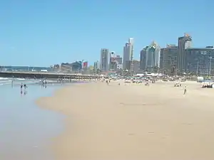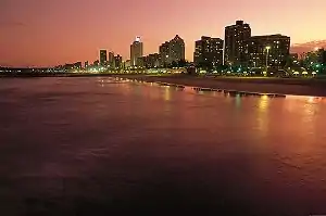 The Golden Mile (or, colloquially, "The Mile") is the popular stretch of beachfront in the city of Durban, KwaZulu-Natal, South Africa, including the promenade that runs along with it. It runs roughly from uShaka Beach (where the uShaka Marine World is located) in Point Waterfront to Suncoast Casino and Entertainment World in the north and now includes a route directly to Moses Mabhida Stadium. It abuts the central business district of the city to its west.