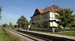 Goldenstedt is a railway station located in Goldenstedt, Germany. The station is located on the Delmenhorst–Hesepe railway and the train services are operated by NordWestBahn.