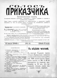 Golos Prikazchika (Russian: Голосъ Приказчика, 'Shop-Assistant's Voice') was a weekly newspaper published in St. Petersburg, Russia, from April to October 1906.[1]