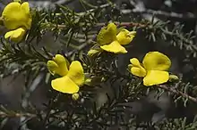 Gompholobium baxteri is a species of flowering plant in the family Fabaceae and is endemic to the south-west of Western Australia. It an erect shrub that typically grows to a height of 15–75 cm (5.9–29.5 in) and flowers between August and December producing yellow, pea-like flowers.[2] This species was first formally described in 1837 by George Bentham in Flora Australiensis from specimens collected in near King George Sound by William Baxter.[3] The specific epithet (baxteri) honours the collector of the type specimens.[4]