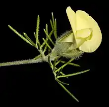 Gompholobium tomentosum, commonly known as hairy yellow pea,[2] is a species of flowering plant in the pea family Fabaceae and is endemic to the south-west of Western Australia. It is an erect shrub with hairy foliage, pinnate leaves with five to seven leaflets, and uniformly yellow, pea-like flowers.