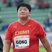 Gong Lijiao (simplified Chinese: 巩立姣; traditional Chinese: 鞏立姣; pinyin: Gǒng Lìjiāo; born 24 January 1989) is a Chinese Olympic shot putter and the 2020 Olympic champion in that event. A three-time Olympic medalist, she holds a record eight medals at the World Athletics Championships, including two World titles.[1]
