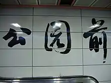 Gongyuanqian Station (simplified Chinese: 公园前站; traditional Chinese: 公園前站; Jyutping: gung1 jyun2 cin4 zaam6; Cantonese Yale: Gūng'yúnchìhn Jaahm; lit. 'Front of the Park Station') is an interchange station of Line 1 and Line 2 of the Guangzhou Metro. It started operation on 28 June 1999 and is located under People's Park in Yuexiu District of Guangzhou.[1]