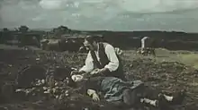 Lowe London approached Czech director Ivan Zacharias, known for his work on Land Rover's Born Free campaign, to direct the piece. Filming took place over six days on location in the south of France,[6] with the cast and crew working from 5am into the night.[7] To achieve the piece's characteristic weathered look, three copies of the film stock (5245 Eastman EXR 50D and 5246 Kodak Vision 250D)[6] were graded separately to emphasize the grain of the film and the earthen tones of the subjects. The three passes were then composited and reworked further in Inferno, an online visual effects system.[8]