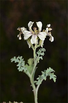 Goodenia calcarata is an erect, glaucous annual herb that typically grows to a height of 60 cm (24 in). The leaves are egg-shaped with the narrower end towards the base, to oblong or lyre-shaped, toothed 20–50 mm (0.79–1.97 in) long and 10–35 mm (0.39–1.38 in) wide on a petiole up to 20 mm (0.79 in) long. The flowers are arranged in racemes up to 150 mm (5.9 in) long on a peduncle 2–7 mm (0.079–0.276 in) long with linear bracts at the base, each flower on a pedicel 10–25 mm (0.39–0.98 in) long. The sepals are narrow elliptic, about 5 mm (0.20 in) long and the petals are white, cream-coloured or pink to mauve and 10–15 mm (0.39–0.59 in) long. The lower lobes of the corolla are 6–9 mm (0.24–0.35 in) long with wings 1.5–2 mm (0.059–0.079 in) wide. Flowering occurs from June to December and the fruit is an oval capsule 12–15 mm (0.47–0.59 in) long.[3][4][5]
