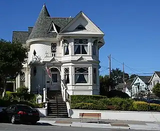 The Gosby House Inn, in Pacific Grove, California, is a two-story Victorian mansion that was built in 1887 by J.F. Gosby. The Inn evolved architecturally in stages, from a vernacular boarding house serving a religious retreat to a Queen Anne hotel catering to vacationers. The Victorian was listed on the National Register of Historic Places on December 2, 1980.[2] In 2022 it is still operating as a bed and breakfast lodging establishment.[3]
