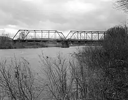 Goshen Land Company Bridge is a historic Pratt through truss bridge spanning the Calfpasture River near Goshen, in Rockbridge County, Virginia, United States. Built in 1890 by the Groton Bridge Company, it consists of two spans, one measuring 138 feet 10 inches (42.32 m) long and the second measuring 120 feet 10 inches (36.83 m); both spans sit at a 30-degree skew.[3]