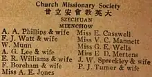 - ↑ Kowalski, Kenneth Reginald (1970). "The Canadian West China Mission and Szechwan — Christianity and Szechwan". The West China Mission of the Methodist Church of Canada, Szechwan, China, 1891–1911 (MA thesis). University of Alberta. p. 27. Retrieved 14 October 2023.