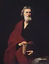 The Gospel of the Ebionites is the conventional name given by scholars[n 1] to an apocryphal gospel extant only as seven brief quotations in a heresiology known as the Panarion, by Epiphanius of Salamis;[n 2] he misidentified it as the "Hebrew" gospel, believing it to be a truncated and modified version of the Gospel of Matthew.[1] The quotations were embedded in a polemic to point out inconsistencies in the beliefs and practices of a Jewish Christian sect known as the Ebionites relative to Nicene orthodoxy.[n 3]