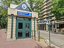 Government Centre station (formerly known as Grandin/Government Centre station) is an Edmonton Light Rail Transit station in Edmonton, Alberta, Canada. It serves both the Capital Line and the Metro Line. It is an underground station located beneath 110 Street between 99 Avenue and 98 Avenue. The station provides service to the Government Centre part of the downtown core and the neighbourhood of Oliver. The station is connected to the Alberta Legislature Building and several other government buildings by underground walkways of the Edmonton Pedway.