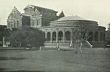 In August 1778, the governor of Madras granted 43 acres for an estate to a civil servant, who, subsequently in 1793, assigned the grounds to a committee of 24 which then regulated the public amusements in the city. In 1821, the committee sold the main house and central garden space to E. S. Moorat, an Armenian merchant who, in turn, sold it back to the government in 1830. The government first used the buildings and the grounds as the collector's "Cutcherry" and later for the "Central Museum."[5] The museum was originally established in a building on College Road in Nungambakkam in the year 1851 and was shifted to the present site in 1854.