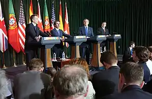 Thus, on March 16, 2003, José María Aznar, US President George W. Bush and British Prime Minister Tony Blair met in the Azores Islands, where the three leaders issued an ultimatum to Saddam Hussein to hand over the weapons of mass destruction he allegedly possessed and then called on all the countries of the world to join the new "Transatlantic Alliance" against terrorism.[61]