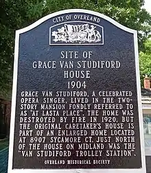 In 1903 Van Studdiford opened the opera Maid Marian and later debuted The Red Feather which was specially written for her. This opera also boasted some of the most elaborate costumes up to that date. She played in and toured The Red Feather for two years. After touring with The Red Feather, Van Studdiford chose her next title part in the opera Lady Teazle which was not performed on Broadway but at several popular music halls throughout the country. In July 1908 she was back on Broadway in The Mimic World. In October 1908 she was at New York's Broadway Theater as Ilma Walden in The Golden Butterfly and toured this opera into 1909. 1910 found Van Studdiford in the popular opera The Bohemian Girl in the part of Arline. In late 1910 she toured in A Bridal Trip before bringing it to Broadway's Herald Square Theater in January 1911 under the name The Paradise of Mahomet.[5] In 1911 she appeared at the Winter Garden Theatre in La Belle Paree as Mimi and later toured in A Bridal Trip now renamed The Paradise of Mahomet. In 1914 Van Studdiford toured the US in Oh! Oh! Delphine playing the title character. Her last recorded performance in an opera or play is in the musical comedy A Trip to Chinatown as Mrs Guyer. In this play Van Studdiford toured many military camps as World War I wound to a finish.[6] This musical was later made into a 1926 silent movie by Fox Studios.[7] After her last stage credit in 1918, she appeared in a small number of silent films using the name Grace Studiford and Grace Studdiford, her last film credit being in 1921.