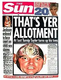During the game, after 60 minutes and with the score at 1–1, Taylor substituted Gary Lineker in his final game for England, preventing Lineker from having the chance to equal, or possibly break, Bobby Charlton's record of 49 goals for England. Many were dismayed to see Taylor substitute England's top striker when his side needed a goal. This led to the media's vilification of Taylor, including the "turnip" campaign by The Sun, which began the morning after the game under the headline: "Swedes 2 Turnips 1". During that campaign, the newspaper's back page featured an image of Taylor's face superimposed onto a turnip.[40]