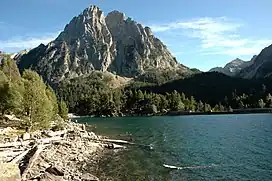 Gran Encantat is a mountain peak of Catalonia, Spain. Located in the Pyrenees, it is the higher of the two peaks (the other being the Petit Encantat) of the Els Encantats mountain, with an altitude of 2,748 metres (9,016 ft) above sea level. It is the tallest point on the Els Encantas twin peaks, the shorter being Petit Encantat, which at 2,733 metres (8,967 ft) is only 12 metres (39 ft) shorter than Gran Encantat. Gran Encantat towers over the picturesque reservoir of Estany de Sant Maurici, and to the east Pica d'Estats (the tallest mountain in Catalonia) can be seen. Gran Encantat is also an incredible climbing destination, with many people climbing, hiking and scrambling in the summer. The mountain is ideal for these activities as it is around 5 kilometres from the small town of Espot. The route from Espot is easily walkable alongside the Riu Escrita river which runs through a classic Pyrenean valley.