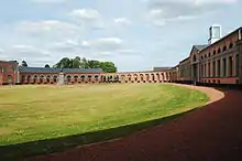 Grand-Hornu is an old industrial coal mining complex and company town (cité ouvrière) in Hornu (Boussu), near Mons, in Belgium. It was built by Henri De Gorge between 1810 and 1830. It is a unique example of functional town-planning. Today it is owned by the province of Hainaut, which houses temporary exhibitions in the buildings. It is one of the four industrial sites which were listed by UNESCO as a World Heritage Site in 2012