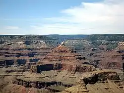 The Grand Canyon Supergroup is a Mesoproterozoic to a Neoproterozoic sequence of sedimentary strata, partially exposed in the eastern Grand Canyon of Arizona. This group comprises the Unkar Group, Nankoweap Formation, Chuar Group and the Sixtymile Formation, which overlie Vishnu Basement Rocks. Several notable landmarks of the Grand Canyon, such as the Isis Temple and Cheops Pyramid, and the Apollo Temple, are surface manifestations of the Grand Canyon Supergroup.