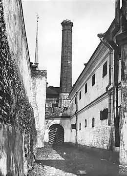 Determined to round up the last Grand Dukes remaining on Russian soil, the Bolsheviks arrested Grand Duke Paul at 3 a.m. on 13 August [O.S. 31 July] 1918.[65] He was taken to the local Soviet, housed in Grand Duke Vladimir's Tsarkoe Selo villa. The next morning, he was sent to Spalernaia prison, where he would remain for most of his incarceration.[65] His cousins, Grand Dukes Dimitri Konstantinovich, Nicholas Mikhailovich and George Mikhailovich, were already imprisoned there.[55][66]