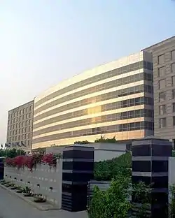 The hotel has a total of 547 rooms and 111 serviced apartments built on an area of about 18 acres.[1][2] The banquet level of the hotel offers over 30,000 square feet/2,790 square meters of conference and meeting space including one fully wired ballrooms in the city; seven additional meeting rooms and board rooms and a pre-function area. It also has four specialty restaurants — China House, Celini, Soma and Fifty Five East; which serve Indian and international cuisines. It also has a Bar, lounges, Gourmet Store, fitness center and a beauty salon which are situated inside a multi-level shopping plaza. It also has a Grand Club, Club Oasis spa, pool area and barbecue area for Residences, Kids play area, Business Center, outdoor recreation facilities and facilities for physically challenged guests and single women travelers. The hotel also has one of the largest collections of art in a public space in India, that showcases over 100 commissioned pieces of art by established and upcoming artists; curated in collaboration with Rajeev Sethi.