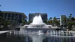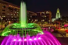 Gloria Molina Grand Park, commonly known as Grand Park, is a 12-acre (4.9 ha) park located in the civic center of Los Angeles, California. First developed in 1966 as the 'Civic Center Mall' with plazas, fountains and a Court of Flags,[2][3] it is now a part of the larger redevelopment known as the Grand Avenue Project, with its first phase having opened in July 2012.[4] Grand Park is part of a joint venture by the city of Los Angeles and Los Angeles County. It was designed and built by the Los-Angeles–based multidisciplinary design firm Rios Clementi Hale Studios.[5] Park programming and entertainment, security and upkeep are maintained by the nearby Los Angeles Music Center.[5]
