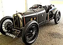 The first car to be built;[23] unpainted it was tested by J Chassagne the liaison officer for the project[45] at Brooklands;[45] this resulted in variety of modifications notably re-configuring of the support bracket for the tail.[45] It was shipped to the Isle of Man registered DA6436 and was tested again during practice for the 1922 Tourist Trophy and was found comparable to the 1922 3-litre Tourist Trophy Grand Prix Sunbeams.[46] Later that year in Strasbourg, it was used by all three Team drivers for practice. When H.O.D. Segrave's assigned Team car was damaged by engine fire during practice, this spare car was race-prepared and driven by him in the Grand Prix.[7][47] Post-works, it was found fire damaged;[7][48] works and modifications to engine and body ensued[49] and private entries in speed events were made before the war.[50] In 1941 the engine was removed and Riley engine and ENV gearbox used,[51] a year later the body was replaced with a new full width two-seater body. Post war it passed through several hands and in the early 1970s it was rebuilt and rebodied with a 1922 Strasbourg style body[52] as an authentic example.[10] (See footnote below.)