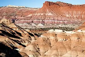 The Grand Staircase–Escalante National Monument (GSENM) is a United States national monument protecting the Grand Staircase, the Kaiparowits Plateau, and the Canyons of the Escalante (Escalante River) in southern Utah. It was established in 1996 by President Bill Clinton under the authority of the Antiquities Act with 1.7 million acres of land, later expanded to 1,880,461 acres (7,610 km2).[3] In 2017, the monument's size was reduced by half in a succeeding presidential proclamation, and it was restored in 2021.[1][4] The land is among the most remote in the country; it was the last to be mapped in the contiguous United States.[5]