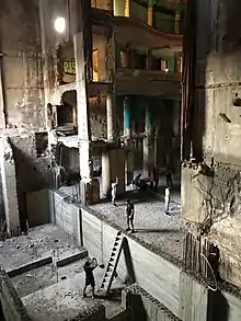 The Grand Théâtre opened in 1929 with a French musical called No, No, Nanette, adapted from a Broadway success. The theatre later hosted the Comédie Française, the Ballet des Champs-Elysées, the Egyptian Ramses Group, and concerts by Abdel Wahab and Um Kalthoum. The Grand Théâtre also screened international movie productions and catered for major literary and charity events. From the 1960s onwards, it operated solely as a movie theater. During the Lebanese civil war the building was used for various purposes (pornographic movies projection, field hospital).[2] It was damaged and was progressively abandoned due to the heavy fighting in the area.