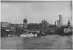A replacement dock, without a watchtower, was promptly built, and survived until 1964, when it was replaced by waiting area for automobiles boarding ferries at the new ferry terminal.[8]